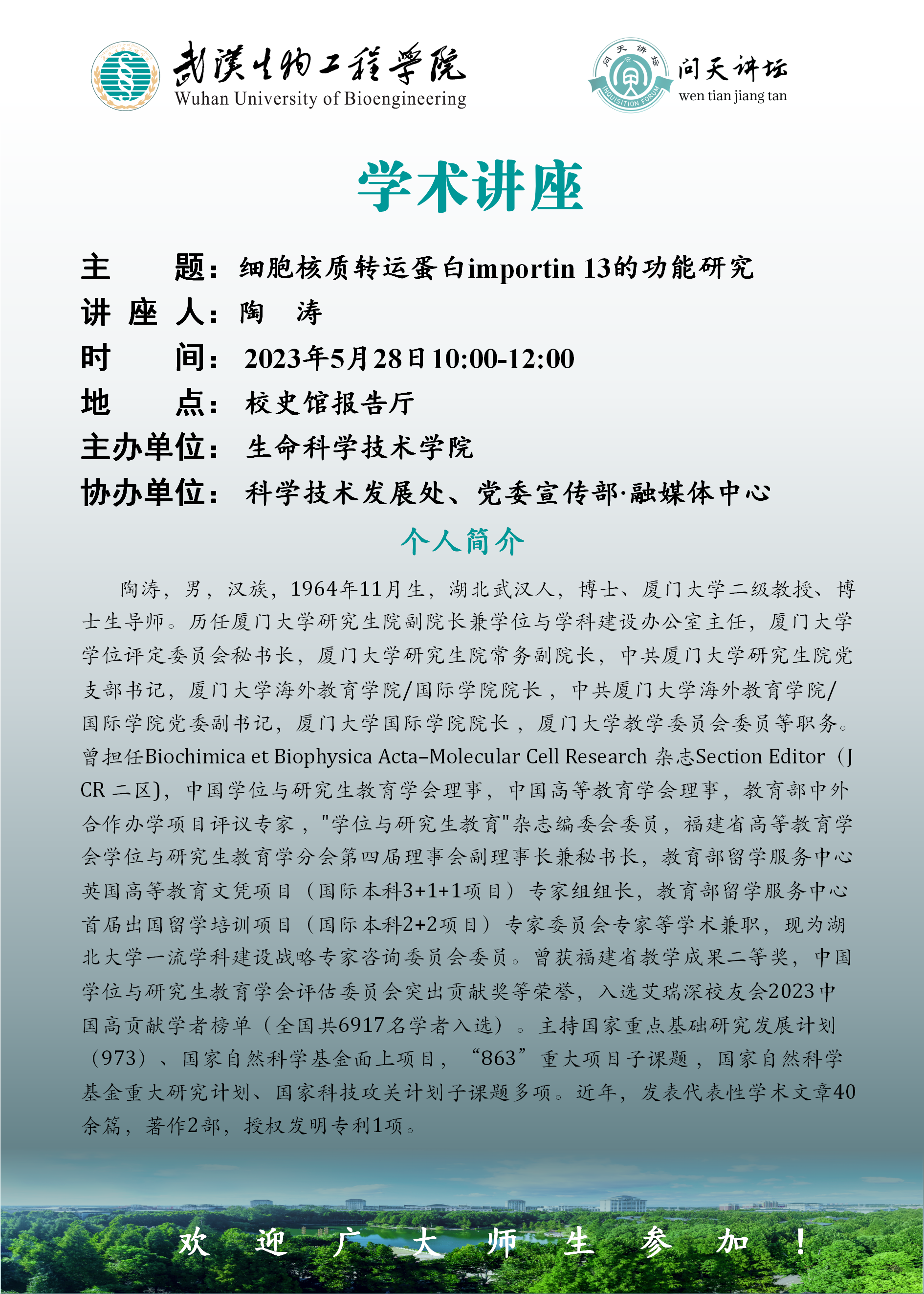 上一条: 【问天讲坛】李兆华教授作题为“生态文明和绿色发展”的讲座预告