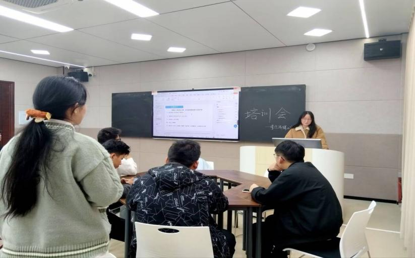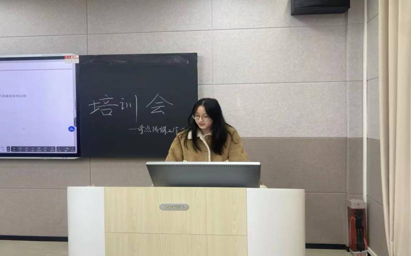 新闻采写培训由新闻采编部部长闵胜雪主讲。她结合新闻稿件具体案例阐释写作原则与注意事项,并在现场设置了互动交流环节,针对同学们在实际写作中遇到的困惑进行现场解答。