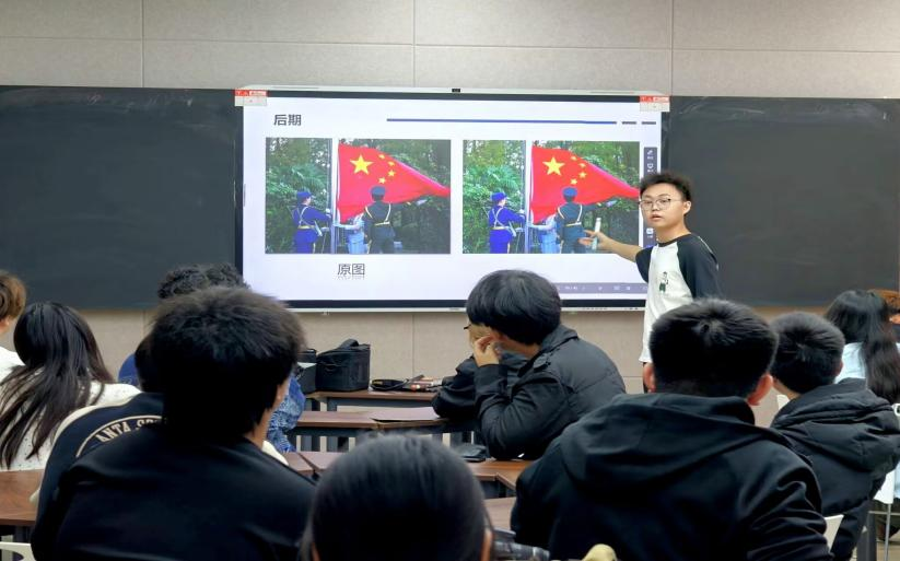 在摄影专题培训中,工作室负责人李吉龙现场展示了多款常用相机,细致讲解了其性能特点、适用场景及操作要领。影音摄制部部长安昊驰通过优秀作品对比分析,分享了拍摄构图与画面布局的实用技巧,帮助大家提升视觉表达能力。