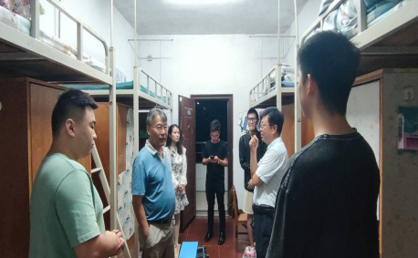 本网讯:8月27日晚,代校长顾豪爽教授带领计科学院党政班子成员到学生公寓走访慰问了返校学生。首先走访了学院从三友园整体搬迁至鄱阳居的2022级学生,顾校长详细询问了学生对新环境的适应情况,了解学生暑期社会实践开展情况,嘱咐学生要尽快适应并规划新学期的学业。随后顾校长一行到青枫居走访了学院2023级专升本学生,并重点与外校考入我校的专升本学生进行交流,勉励同学们站在新的起点,促进自己全面发展,为开创未来美好人生打下坚实基础。
