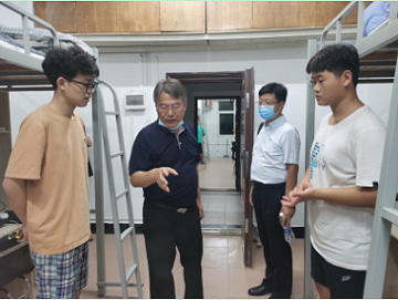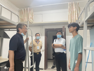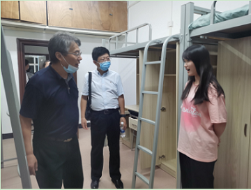 学校常务副校长(左一)顾豪爽及学院党政负责人走访三友园、四季苑学生宿舍