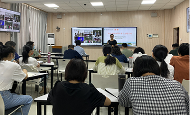 本网讯(通讯员 汪怀杰)王瑾老师于今年9月7日获评为2022年“荆楚好老师”,她和她所在的外国语学院“四叶草”教学团队,是学习践行“四有”好老师要求的榜样。为推动学院教学团队建设,向身边的先进典型学习,9月28日下午,计算机科学与技术学院在八号教学楼8304智慧教室举办了王瑾教学团队学习报告会,本次活动邀请了“四叶草”教学团队创始人王瑾教授主讲,学院全体教师参加报告会,学院党总支书记谭学锋主持报告会。