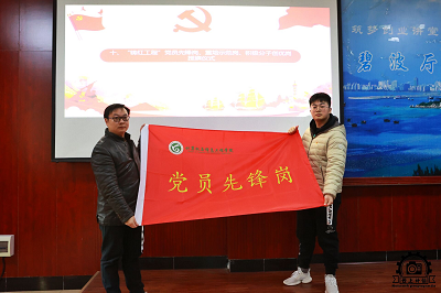 计信学院党总支副书记陈龙为“重培示范岗”授旗