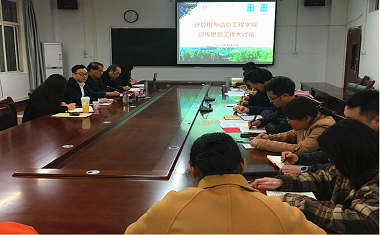 本网讯(通讯员 王镇)2021年4月8日 晚19:00—20:20,学院在8307会议室召开了宣传思想工作大讨论,副校长向三久出席会议并讲话;学院党政班子成员,学院总支委员,各党支部书记、年级负责人,以及宣传委员、“云上计信”学生代表等参加会议。会议由党总支书记谭学锋主持。