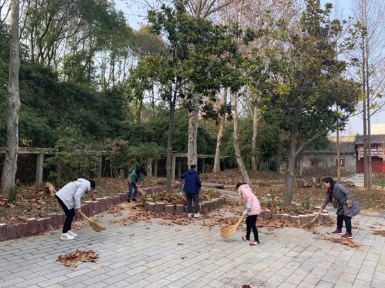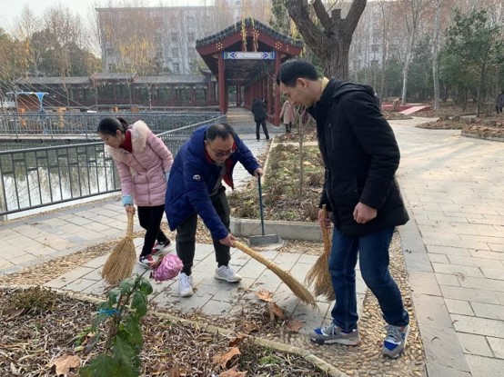 在打扫的过程中每一位党员教职工干劲十足,按照事先划分的区域进行打扫,高效有序,确保问天湖湖区景观宜人,配合诗画校园建设,给师生营造整洁舒适的工作、学习和生活环境,让全校师生充分品味和享受落叶的美感。