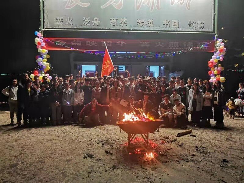 在水一方篝火晚会后参会师生合影