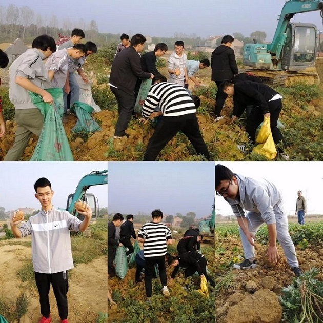 同学们在田地里挖红薯