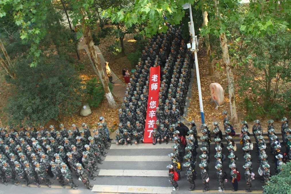 9月10日早上7:40,我院2019级1400余名新生自发的来到8号教学楼门前排成“T”字形,举行了一场千人“爱的表白”,为教师送上第35个教师节的祝福。
