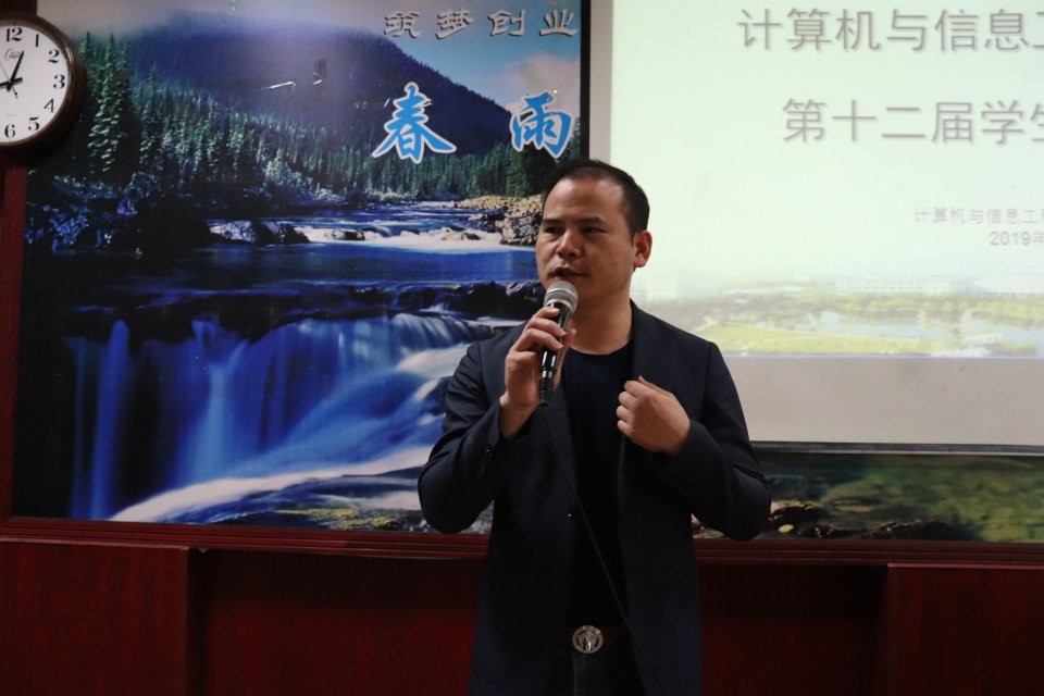 图为第十二届计信学院学生会主席吴优作自我介绍