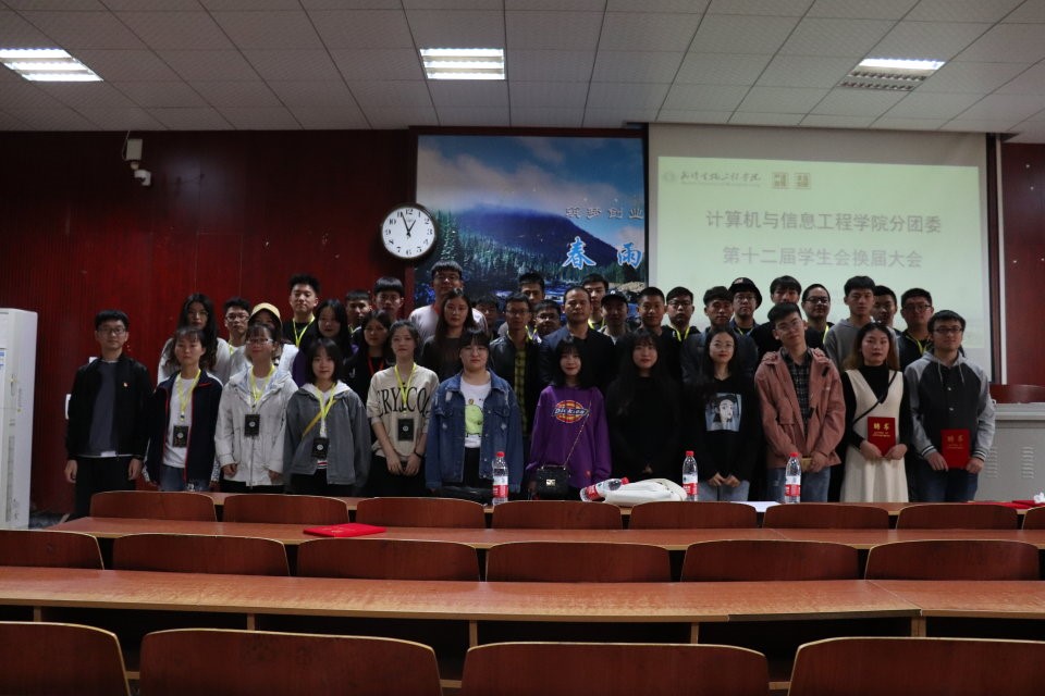 图为计信学院第十二届学生会换届大会全体参会人员合影