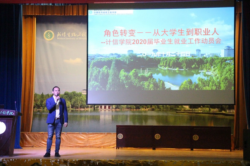唐新强书记围绕着“角色转换,从大学生到职业人”这一主题向毕业生们展开就业指导。他从“认清就业形势、认清角色定位、认清个人优势”三方面引导毕业生要树立正确的职业意识,促使自己在态度上从“慢就业、不就业”转换到"主动就业”,才能“就好业”;即将步入工作岗位的毕业生们要认清学校与企业的区别在哪里,以及学生与职业人的区别在哪里两大根本问题,通过角色的转换,让思想、行为和习惯切换到职业人的身份,做到“身心同时入职场”。唐书记还呼吁所有毕业生积极行动起来,为自己的人生担当,告别一切不好的习惯,让自己做一个真正的职业人。