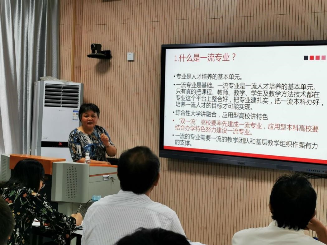 培训伊始,陈利教授首先从自身教学和参与教学管理的经历提出了自己对“双万计划”的四点思考,以“什么是一流专业”、“怎么建设一流”、“为什么建设一流专业”为出发点,提出了一流专业是一流人才培养的基本单元,只有真的把课程、教师、教学、学生及教学方法技术都在专业这个平台上整合好,把专业建扎实,把一流本科办好,培养一流人才的目标才可能实现,“双一流”高校要率先建成一流专业,应用型本科高校要结合办学特色努力建设一流专业。