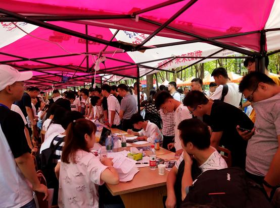 图为迎新点报到现场