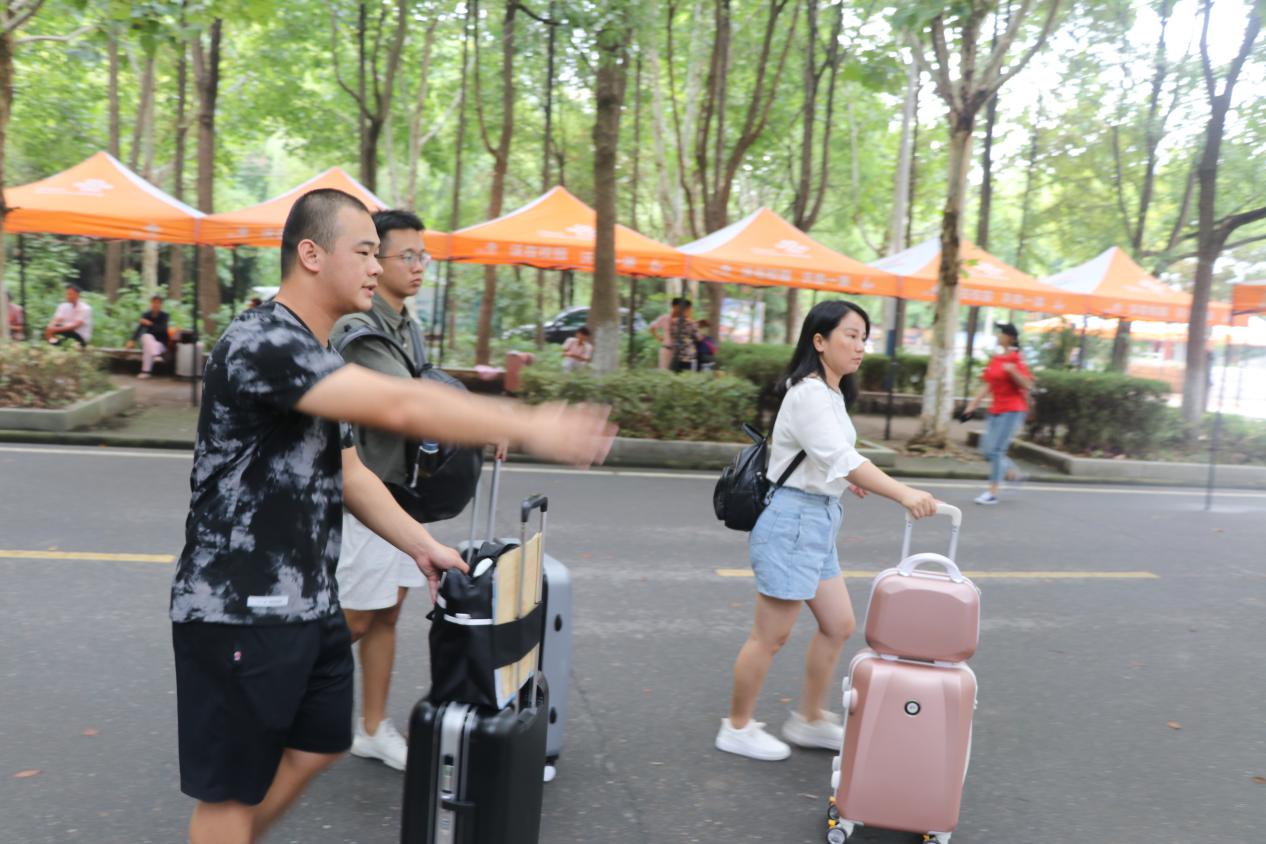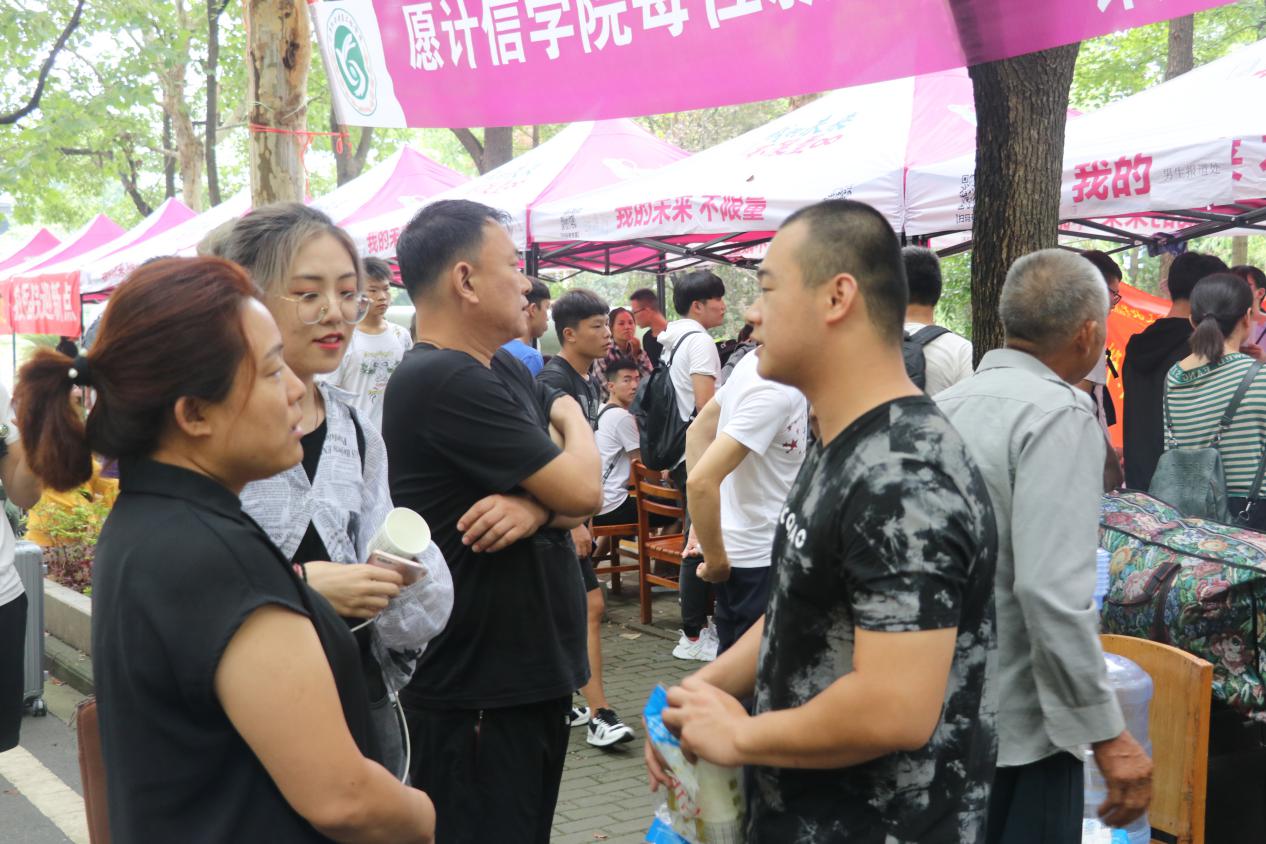 本网讯(通讯员 唐思铭黄敏 摄影 张卓阳)“各位新生及家长,请注意,现在报到分寝室的人员较多,请家长们到休息区等候,让学生完成报到手续即可。”计算机与信息工程学院的迎新点,一位穿着黑白相间的胖小伙,正举着话筒费力喊着,只见他喊完,家长们自发到休息区,坐等孩子报到完毕。