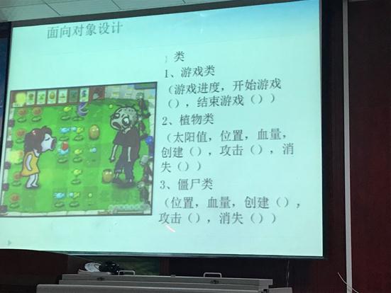 图为潘天恒老师讲解的“植物大战僵尸”的理念