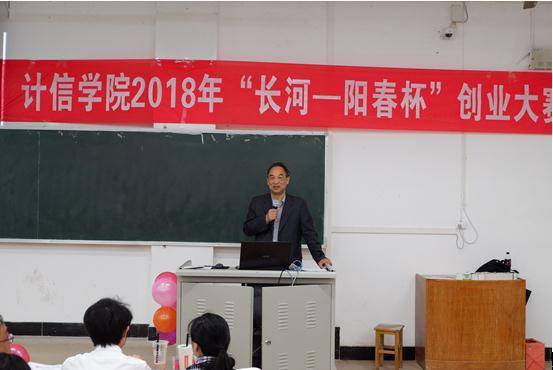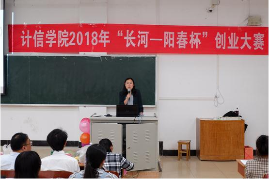 本网讯(通讯员邓恒恒 黄敏 摄影张拯金亦威)5月11日下午,计算机与信息工程学院在九阶四教室举行了2018年“长河-阳春杯”创业大赛决赛,院长何穗教授、常务副书记张琴、网络工程教研窒主任贺杰副教授、信息管理教研室主任刘丹副教授、应用技术教研室主任王晶晶副教授、教师杨彦副教授、教师吴晓凌博士、湖北省恒大伟业投资有限公司副总经理陈明、凌科数码负责人阮长禹、茶果年华武汉地区总代理获喜康共同组成评委席,全体辅导员以及学生代表观看了决赛。