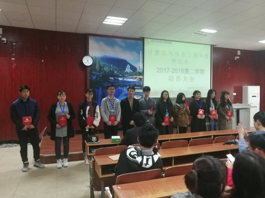 首先,主持人对计算机与信息工程学院分团委学生会全体干事表示衷心的感谢。然后再由各个部门部长依次对学生会所有成员提出期望与建议,总结为四点期望与建议:一是要树立信心,要以更高的标准要求自己,起好模范表率作用;二是要有牺牲和奉献精神,努力承担好应尽的义务,发挥好桥梁纽带作用;三是要加强团队协作,努力创新,敢于突破,齐心协力搞好学生会的工作,结合学校特点、学生特点,多多开展有创意、“接地气”、传播正能量的活动;四是要加强相互间学习和交流,在交流学习中享受个人成长进步的愉快,珍惜这个锻炼自我、展示自我的平台,积极地完善、提升自身。两位指导老师为上一学期的“部门之星”、“优秀部长”和“优秀部门”进行颁奖。
