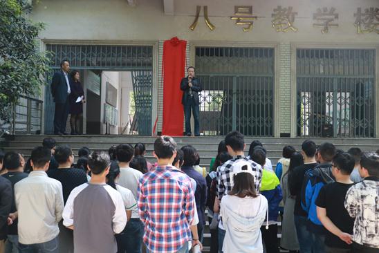 图为校长李友清教授、院长何穗教授、副院长周方副教授、常务副书记张琴和系主任等共同揭牌