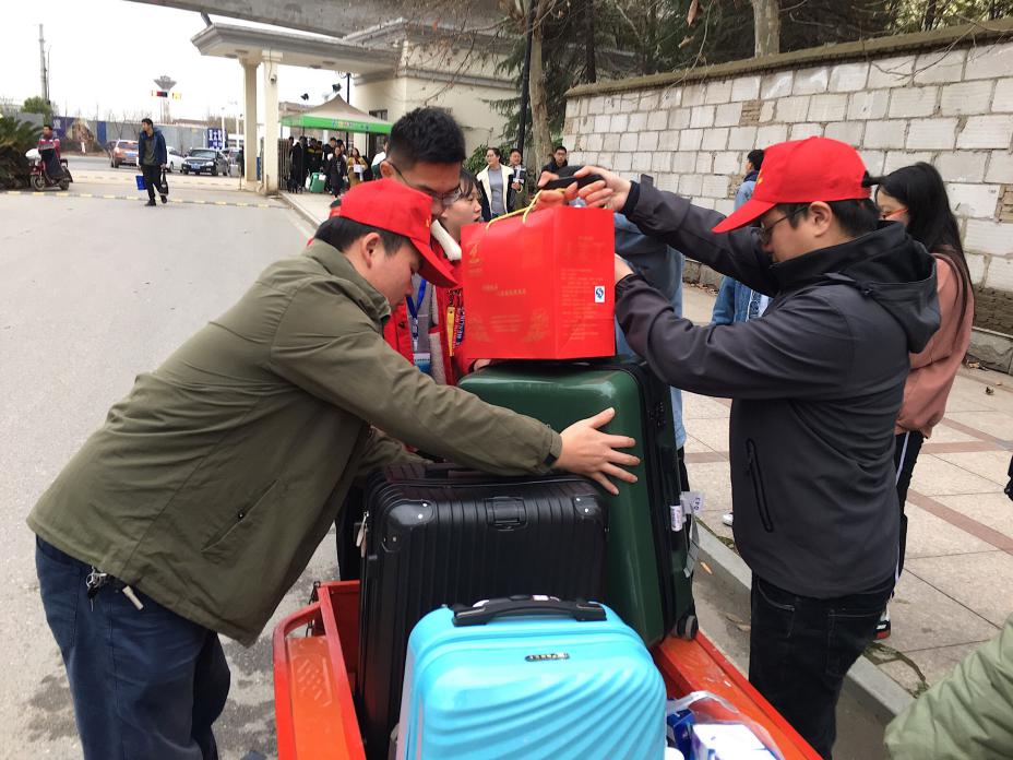 计算机与信息工程系分团委志愿者们于3月5日共帮助26名同学将行李送回宿舍,这些同学分别来自生命科学与技术学院、计算机与信息工程系、管理学院、药学院和园林系等院系,且从学校的东区到北区均有同学受过帮助。