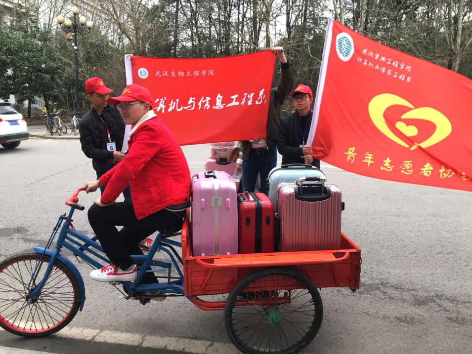 本网讯 (通讯员 靳婵婵 黄敏)3月3-4日,是我校老生开学返校报到的日子,在偌大的校园里一抹抹红色的身影不停地晃动,一辆辆载满行李的三轮车,来回奔波于校门口和宿舍楼之间。原来,这是我校计算机与信息工程系分团委的志愿者们在校门口义务帮助返校同学搬运行李,弘扬为人民服务的雷锋精神。