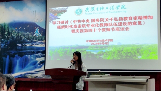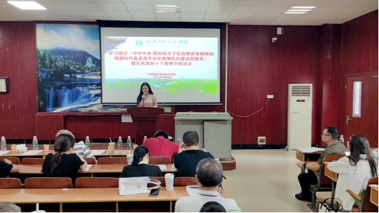 (通讯员 吴翔)2024年9月4日下午,计算机科学与技术学院在九号教学楼阶一教室举行了学习研讨《中共中央国务院关于弘扬教育家精神加强新时代高素质专业化教师队伍建设的意见》(以下简称“意见”)暨庆祝第四十个教师节活动。教务处处长苏顺强教授出席了会议,学院党政班子成员和全体教职工参加了会议,学院党总支书记谭学锋主持会议。