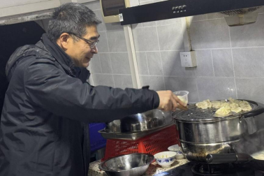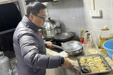 室内就餐区大家围坐一起,拌馅、擀皮、包褶,手法娴熟的老手与现学现卖的新手相互打趣、耐心传授,形态各异却饱含心意的饺子摆满餐盘。室外烧烤区烟火升腾,香气扑鼻的烤串在“大厨”们的精心烤制下,色香味俱全,让人垂涎,大家边吃边分享生活学习趣事,其乐融融。