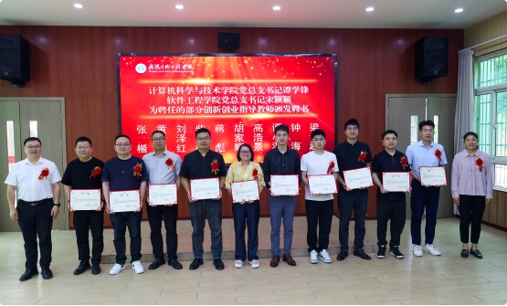 活动现场还举行了创新创业指导教师聘任环节,计算机科学与技术学院党总支书记谭学锋、软件工程学院党总支书记宋颖颖为梁超、钟海、谭小羽等10位校友颁发了聘书。未来,他们将为学生创新创业项目提供“一对一”指导与帮扶,助力学院在创新创业教育上提质增效。