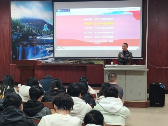 启动仪式结束后,进入“讲好故事学思想”系列报告会环节。校党委学工部部长王龙以《勇攀高峰、敢为人先的创新精神——钱学森与中国航天》为题作专题报告,报告以“祖国需要科学家”话题为切入口,从“在学生时代埋下创新种子”“在苦难岁月选择航天报国”“开创中国航天伟业新纪元”等三个部分讲述了钱学森“五年归国路、十年两弹成”的科创报国故事。王龙鼓励学院广大学子深入了解校园“科技文化生态长廊”“楚风园”等科学家精神育人阵地,深度参观“为国铸剑——钱学森与中国航天事业展览”,将爱国情、报国志注入科创征程,在人工智能领域勇攀高峰,用青春书写科技报国答卷,让科学家精神薪火相传。