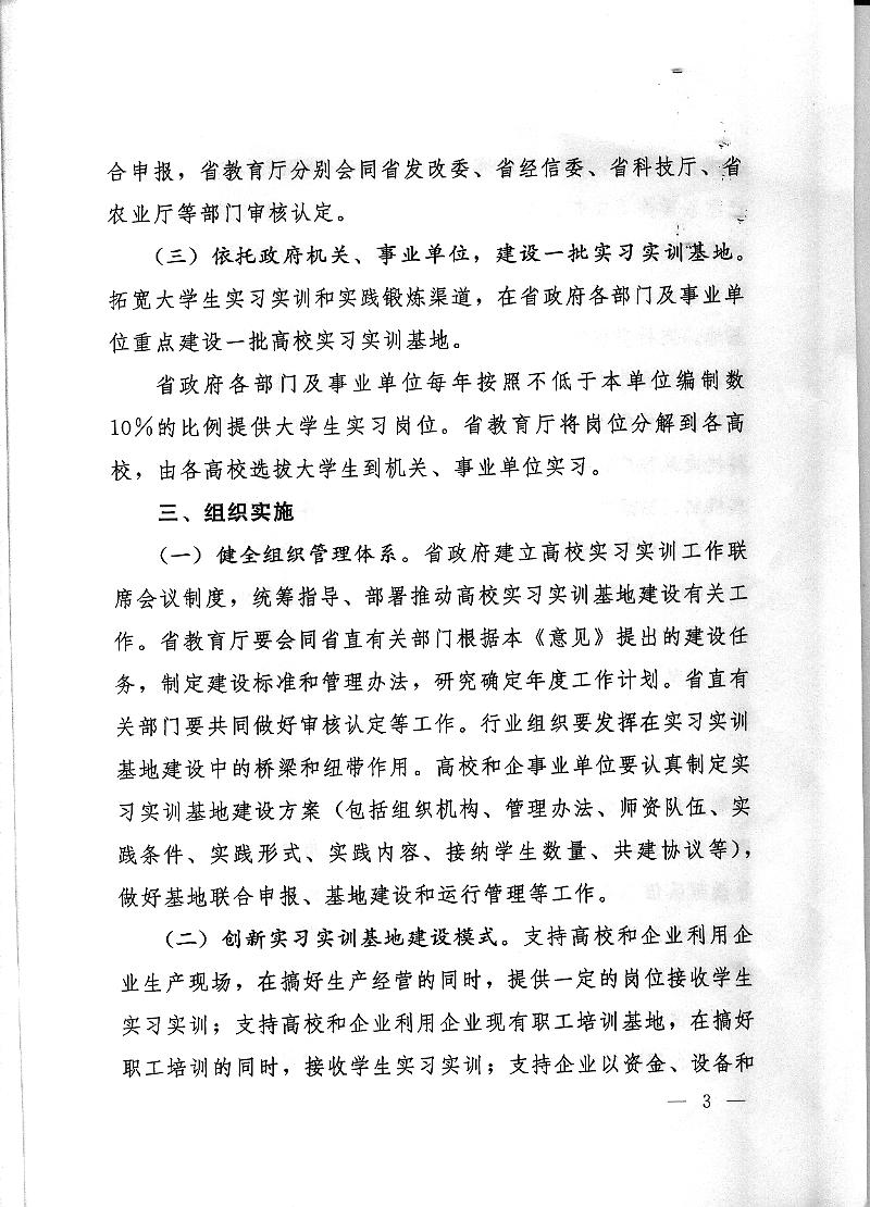省人民政府办公厅关于进一步推进高校实训基地建设的意见