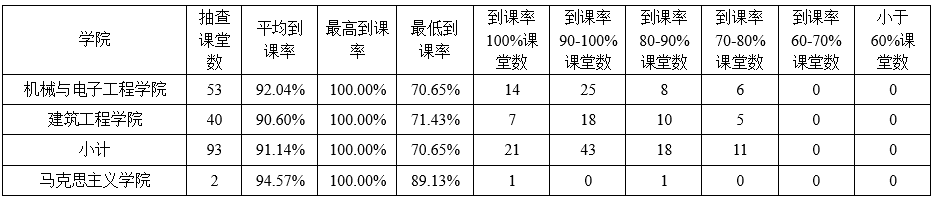 注:马克思主义学院到课率以该院任课教师授课课堂为统计对象,其他学院到课率以学生上课课堂为统计对象。