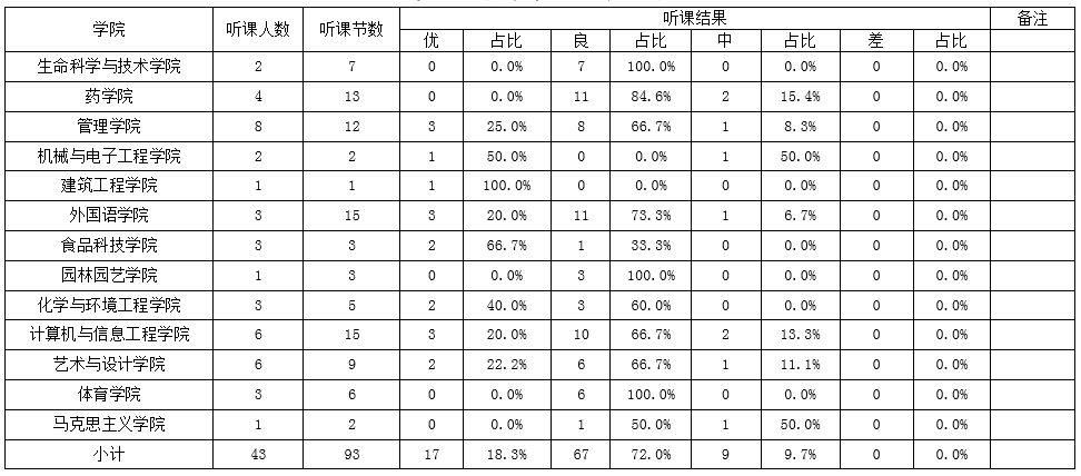 注:听课结果中的占比为各等级节数占本单位听课总数的比例。