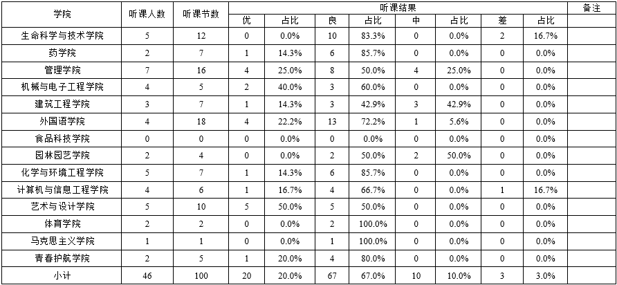 注:听课结果中的占比为各等级节数占本单位听课总数的比例。