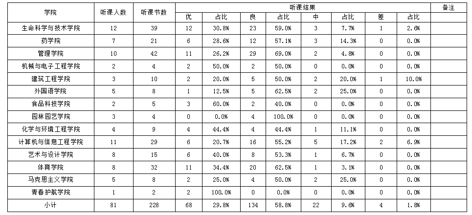 注:听课结果中的占比为各等级节数占本单位听课总数的比例。