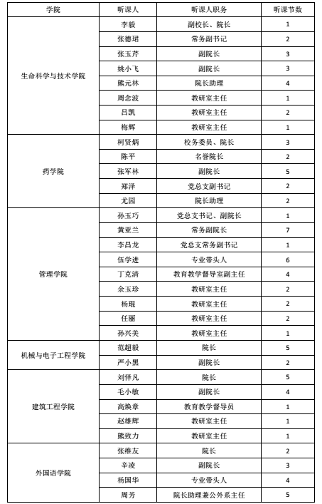 本学期第八周(4月23日至4月27日),教务处、教育教学督导室负责人,各学院管理干部对全校课堂进行了随机听课,本周听课课堂共计185个,共74人参与听课,其中,“优”等级课堂数70个,占听课节数的37.8%;“良”等级课堂数99个,占听课节数的53.5%;“中”等级课堂数15个,占听课节数的8.1%;“差”等级课堂数1个,占听课节数的0.5%。第8周听课结果统计表详见附件一,各学院听课情况统计表详见附件二。