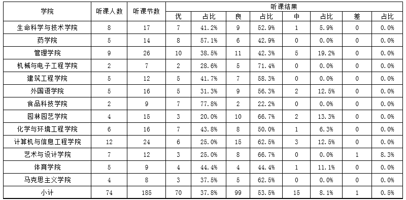 注:听课结果中的占比为各等级节数占本单位听课总数的比例。