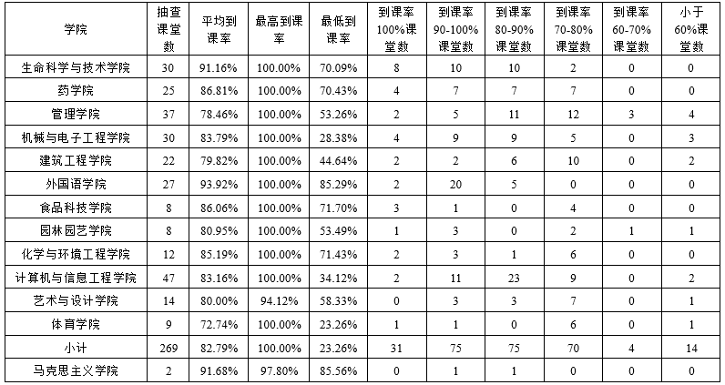 注:马克思主义学院到课率以该院任课教师授课课堂为统计对象,其他学院到课率以学生上课课堂为统计对象。