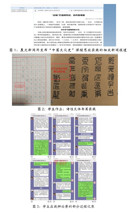 2019年7月,“中国文化史”课程思政建设项目获得学校审批,成为学校首批课程思政教学教改项目。2020年9月课题组成员对“中国文化史“课程的思政建设效果进行了问卷调查,结果显示,学生对课程的思政育人效果认同感比较强,82.9%的学生认为很大,17.1%的同学认为比较大。2020年8月,《教育研究》期刊发表了题为《在线教学中< 中国文化史>课程思政实践探索》的研究文章。