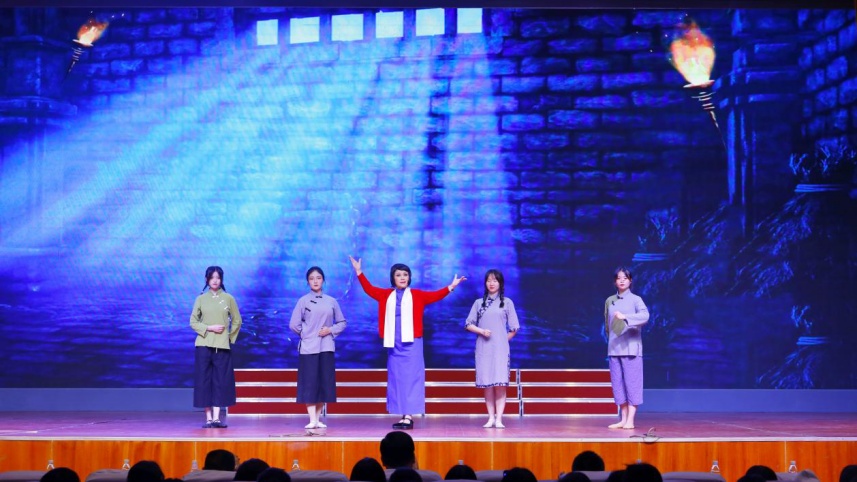 该校客座教授、楚剧大师彭青莲也在当晚的红色经典音乐会中为师生们献上了经典的楚剧《江姐》选段《不要用哭声告别》。