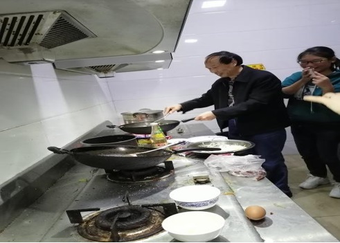 图为马敬桂院长亲自下厨为新生宴烹制菜肴