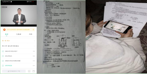 2019级应用化学二班高崇皓学习《有机化学》课程。他表示:“在这个不寻常的春天,我们的国家,正在打响防疫保卫战。而我按照学校老师的要求,在家学习网络课程,老师在网上给我们授课。在这个非常时期,网上授课对我来说既是机遇,也是挑战。网上授课提供了大量教学资源,可以学到大量知识,快速提高文化水平。但同时也是对自学能力,自律能力的一项考核。第一天上课,我明显感受到了网上授课的优劣。优点在于,知识点可以反复观看,增强对基础知识的熟练程度。但并没有面对面教学老师讲的精细。陌生的术语使我查找了大量资料方可理解。一节课的笔记就记了一大面。学校老师统一安排了教学计划,我会严格按照计划进行学习。”