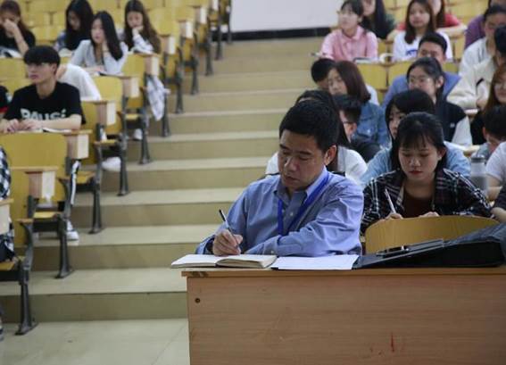 图为专家组副组长李卫东教授(前排)深入课堂听课