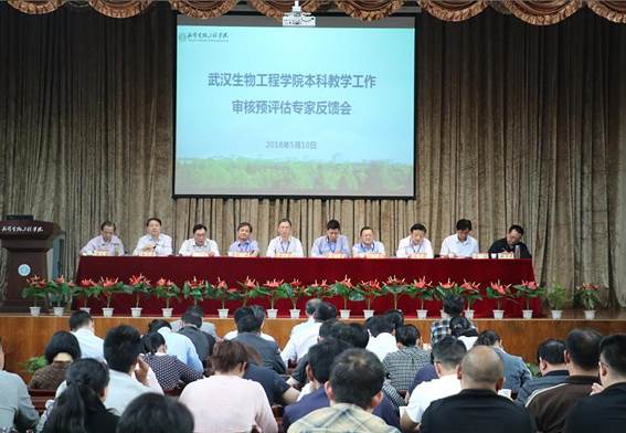 (记者闻天 摄影 陈冲 程晓璐)5月10日上午,武汉生物工程学院本科教学工作审核预评估专家反馈会在钱学森报告厅举行。预评估专家组全体成员,学校全体校领导、中层副职以上干部及教师代表出席会议。反馈会由我校校长李友清教授主持。