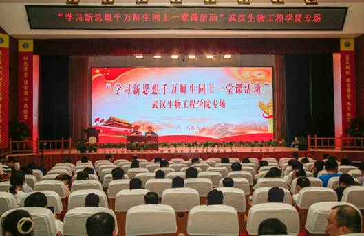 (记者闻天摄影先佳梅卢心怡)6月29日上午,“学习新思想千万师生同上一堂课活动”武汉生物工程学院专场在问天湖畔大礼堂举行。校长李友清教授为千余名师生代表授课。活动由校党委副书记、副校长孔德文主持。