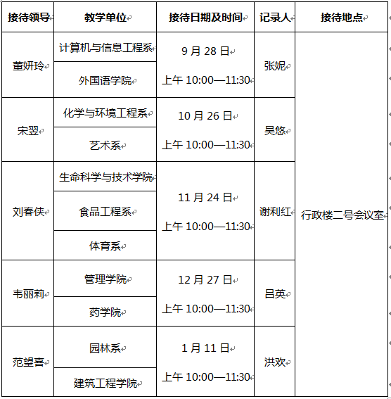 2016—2017学年第一学期教务处领导接待日安排