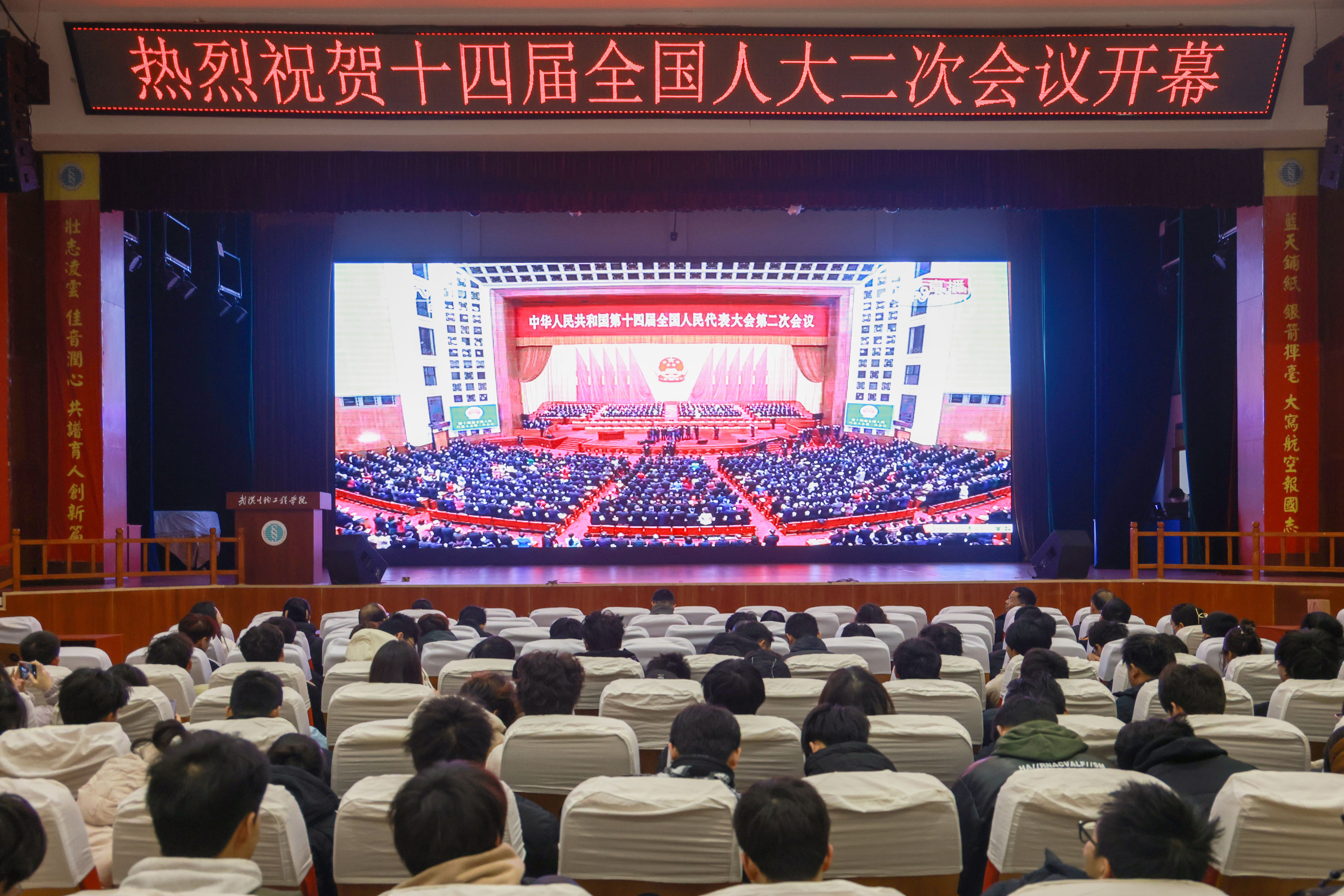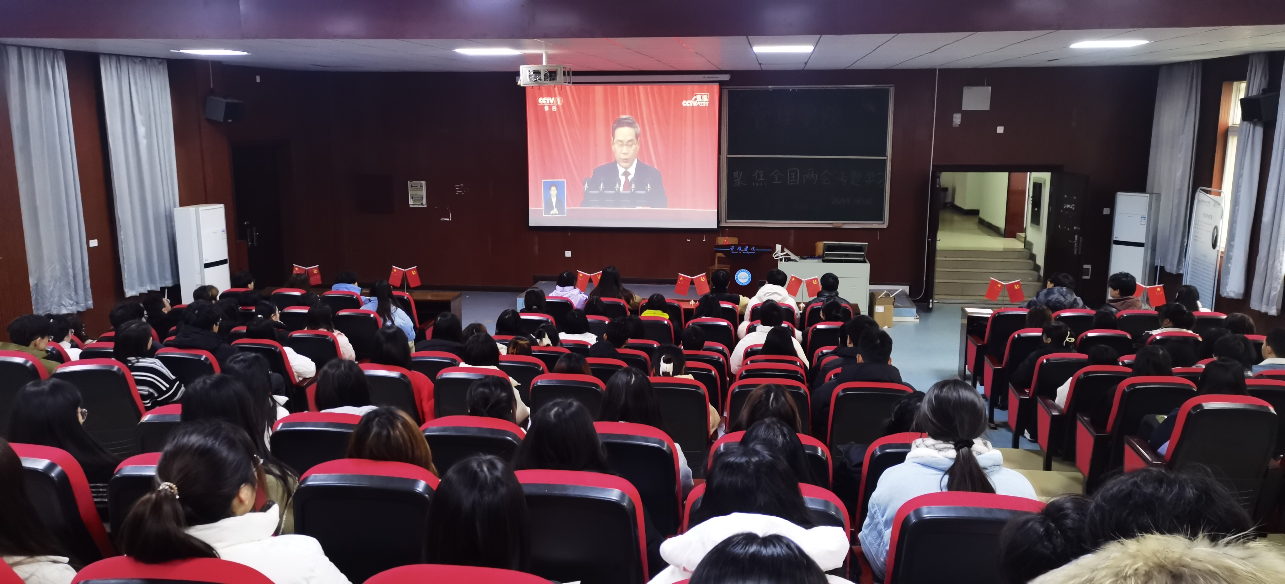 管理学院师生在东方红报告厅集中收看十四届全国人大二次会议开幕会(摄影 黄朝键)