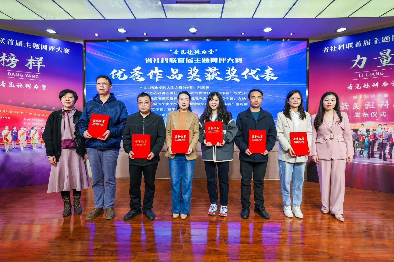 吴宇军(右三)在省社科联首届网评大赛颁奖现场(图片来源荆楚网)