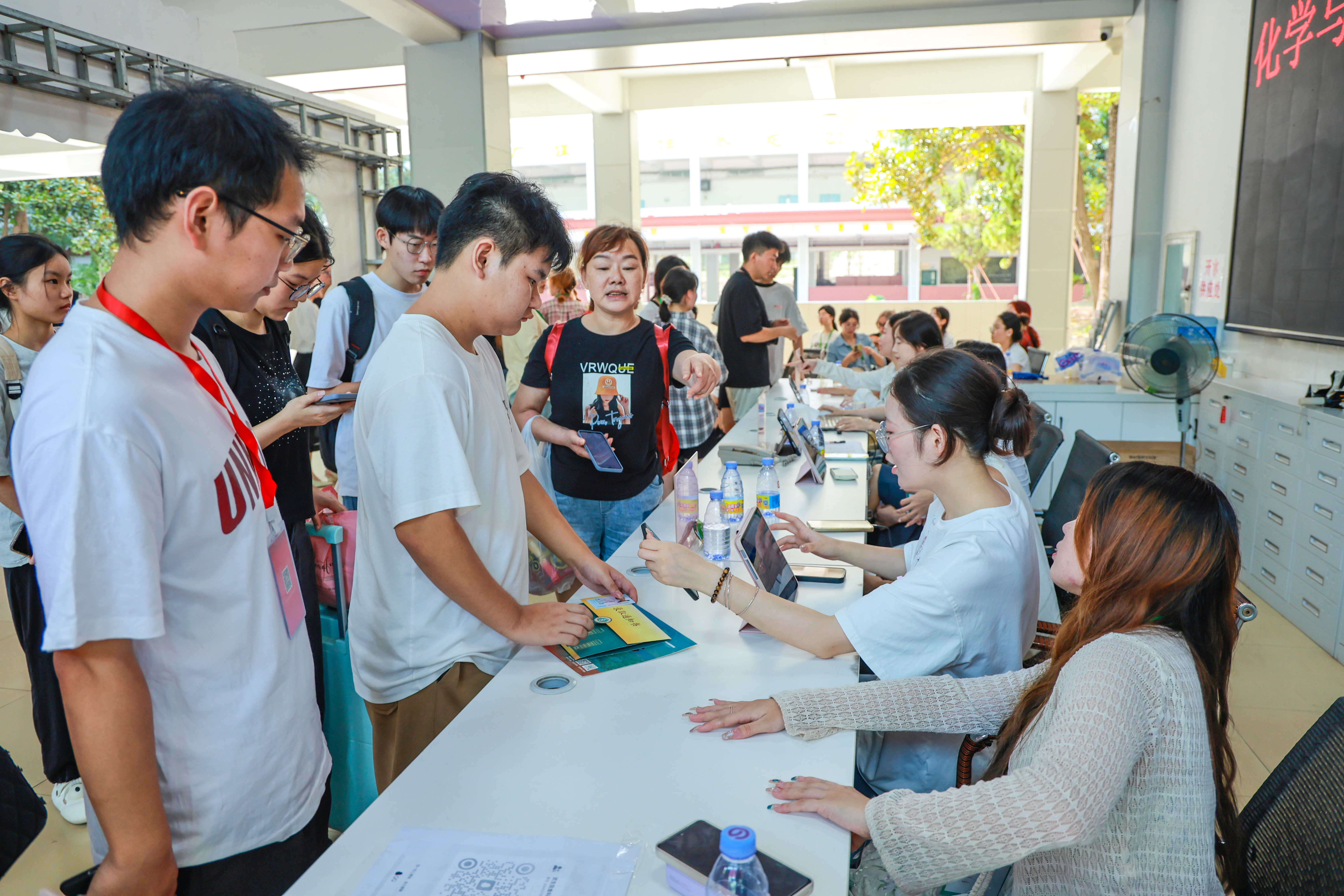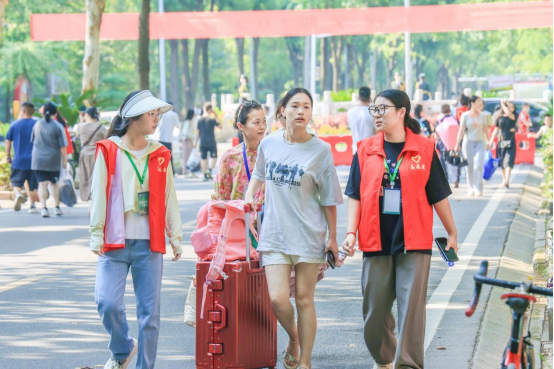 校园内,志愿者的微笑与贴心服务无处不在。师生们自发组建志愿服务队,热心为新生提供“一对一”志愿服务,帮助新生搬运行李,引导新生有序完成注册报到、物资领取、寝室入住等全部流程。