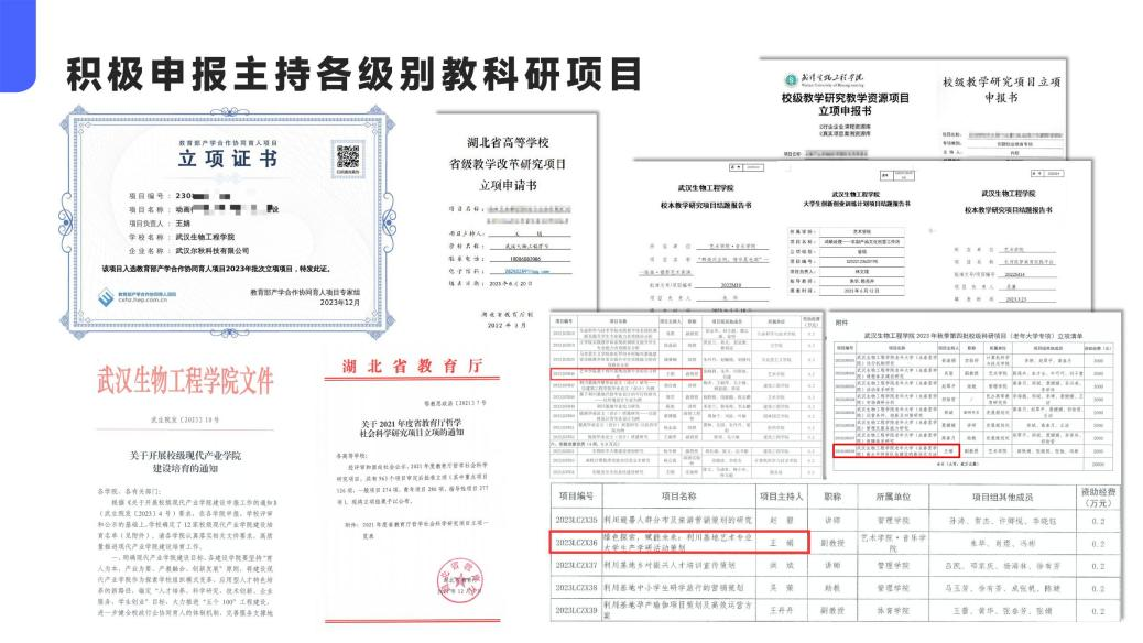 教研室成员及指导学生获外观设计专利若干,编写《游戏原画设计》《动画场景设计》等3部教材(华中科技大学出版社出版),纳入核心课程;依托教育部项目建成 “动画行业案例库”,收录200余例行业案例,覆盖三维建模等领域。