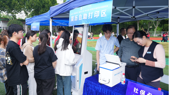 双选会现场分区科学、服务周到,设有校友企业专区、长江新区及新洲区企业专区、就业指导AI赋能区、简历自助打印与简历问诊区、政策咨询区等多个功能板块,为毕业生提供“一站式”就业服务。其中,首次增设的就业指导AI赋能区,依托智能系统为学生提供简历优化、面试模拟、人岗匹配等精准化、个性化指导,吸引了大量学生驻足体验,成为双选会现场的一大亮点。