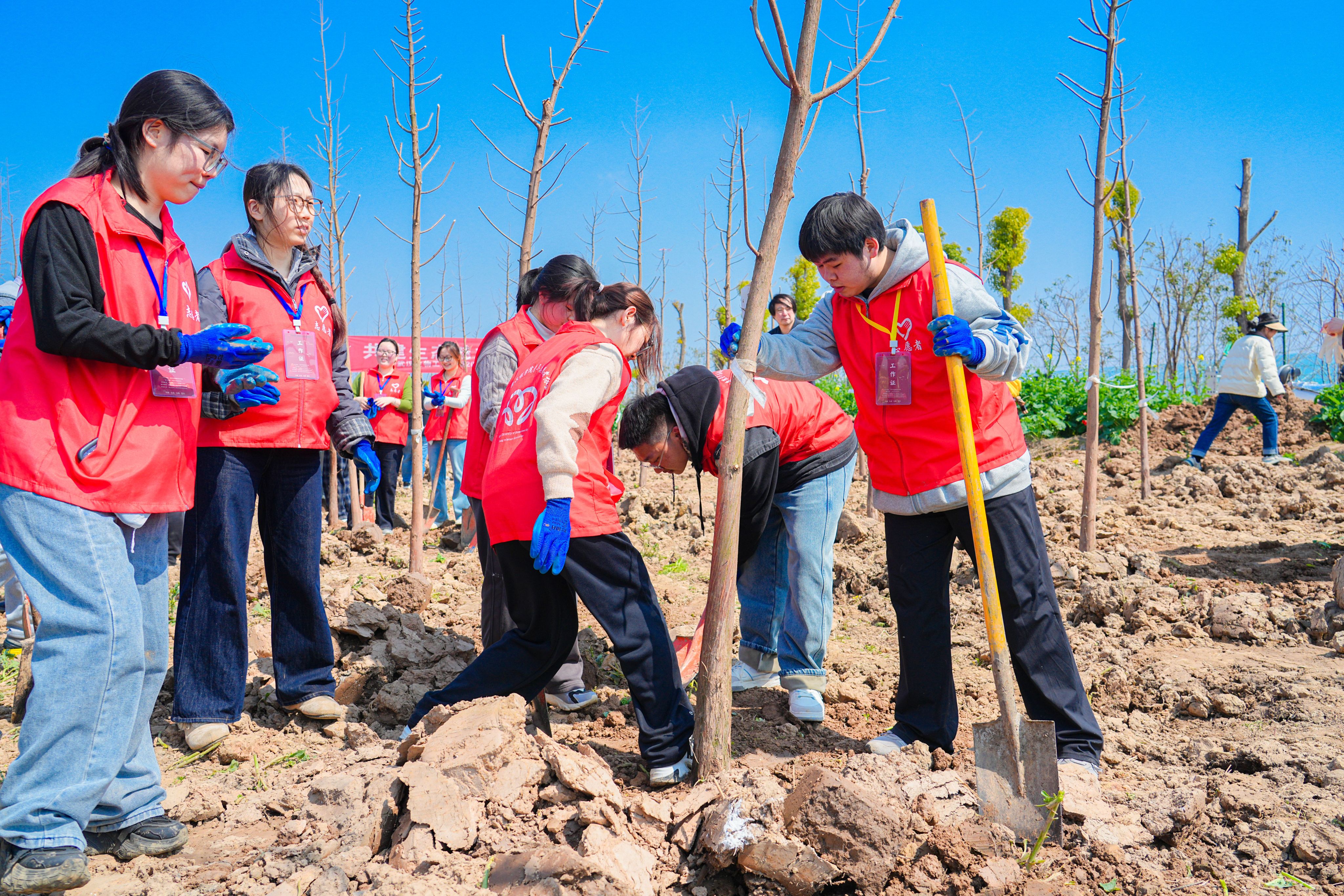 本网讯(记者 叶涛 摄影 陈冲 郑景升 张晨阳)春风送暖,新绿初萌。3月12日中午,由学校师生与武汉市风华园林绿化有限公司共同组建的“添绿队”正以大地为纸、以树苗为笔,在稻田公园晒秋田园广场上,为春天写下诗行,为校园绘就一幅“会呼吸的风景”。